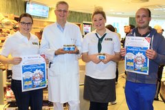 Freuen sich, dass der Verkauf bald wieder startet: Filialleiterin Christina Obenland, Professor Harald Löffler, Verkäuferin Sarah Di Nardo und Marc Härdtner (von links).